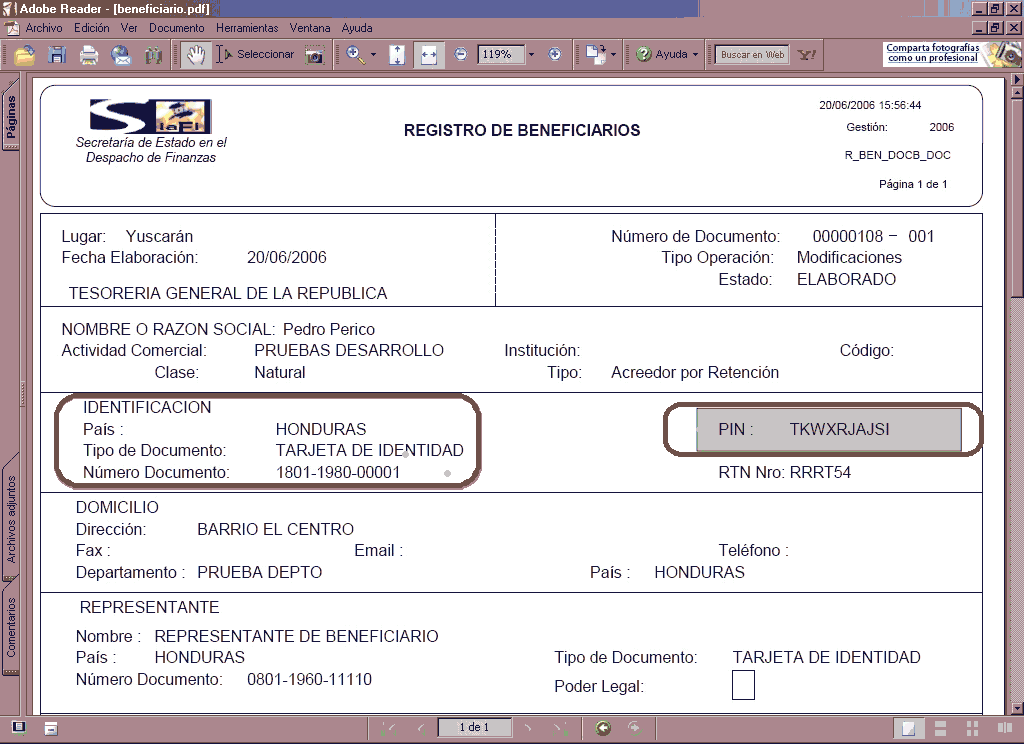 Número de Identificación: